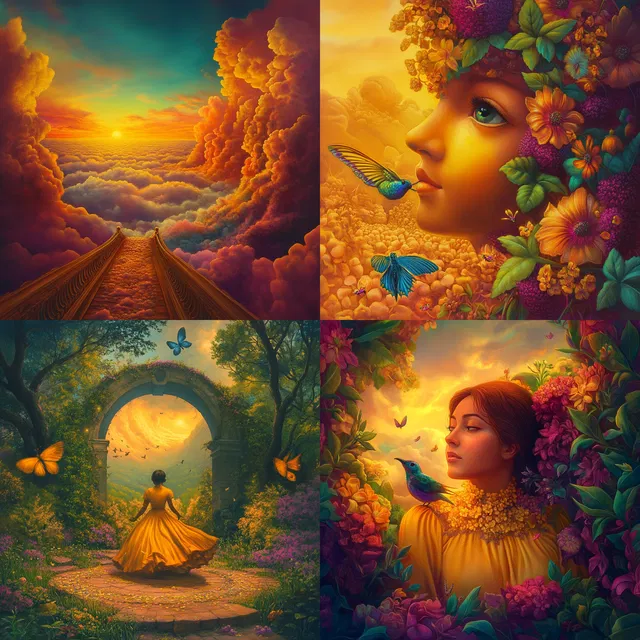 Живая цветовая палитра и сказочные композиции определяют этот стиль, который отличается замысловатыми деталями и романтическим освещением. Завораживающие темы и пышные пейзажи вызывают чувство удивления, сочетая элементы романтизма, модерна и символизма.