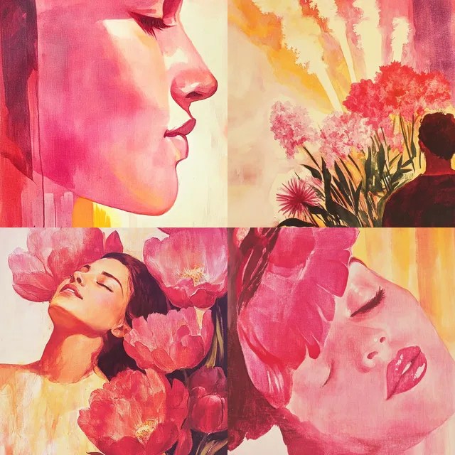 Этот стиль отличается тёплой розовой палитрой и создаёт мечтательное, эфемерное настроение в различных темах. Живописные текстуры и выразительная манера письма создают лирическое движение, усиливая художественную текучесть.