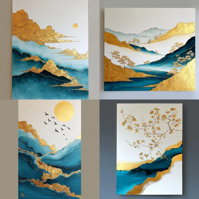 Этот стиль поражает сочетанием металлических текстур и плавных форм. В цветовой палитре доминируют золото и бирюзовый, создавая гармоничный баланс между традицией и современностью.