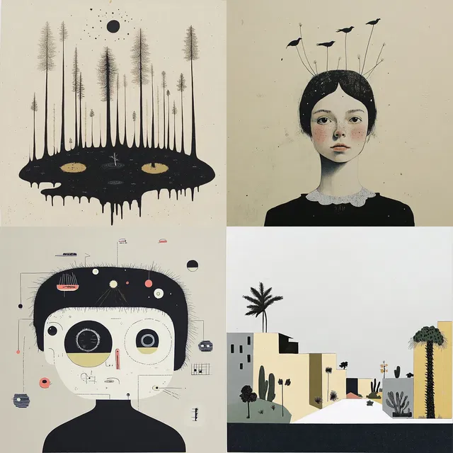 Этот стиль отличается минималистичной и абстрактной эстетикой. Он включает в себя геометрические формы и приглушённые цветовые палитры, вызывая чувство спокойствия и самоанализа. Использование упрощённых форм и символических образов создаёт уникальный визуальный язык, который одновременно современен и вне времени.