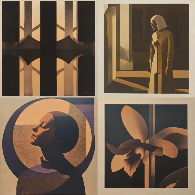 В этом стиле доминирует геометрическая абстракция: тёплые тона сепии и минималистичные композиции создают вневременную, задумчивую атмосферу. Стиль отличается многослойной глубиной и пространственной абстракцией, вдохновлённой такими модернистскими течениями, как конструктивизм и баухаус.