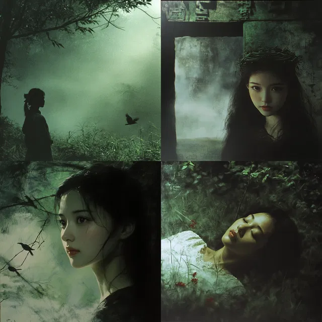 Этот стиль завораживает своей атмосферностью и загадочностью. Он пленяет глубиной и сказочными композициями. В цветовой палитре преобладают приглушённые зелёные и мягкие серые тона, создающие туманную и мистическую атмосферу, которая усиливает таинственность.