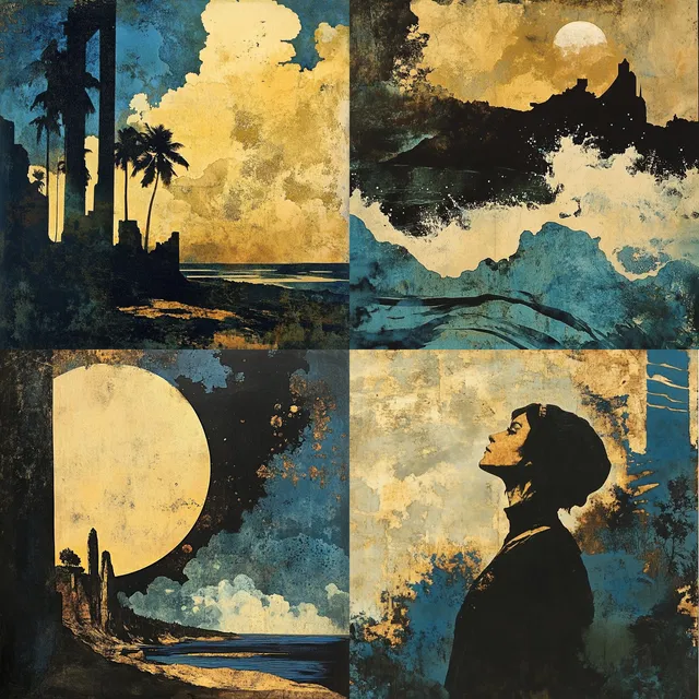 Композиции с насыщенной текстурой создают ощущение сказочности, сочетая сюрреализм с приглушённой, землистой палитрой. Силуэтные формы и многослойные текстуры придают изображению глубину и таинственность, приглашая зрителя в загадочный мир. Этот стиль превосходно подходит для создания атмосферных, созерцательных сцен, хотя может не отличаться точностью в контексте фотореализма. Он идеально подходит для книжных обложек, оформления альбомов и инсталляций, очаровывая своей мистической привлекательностью и вечной актуальностью.