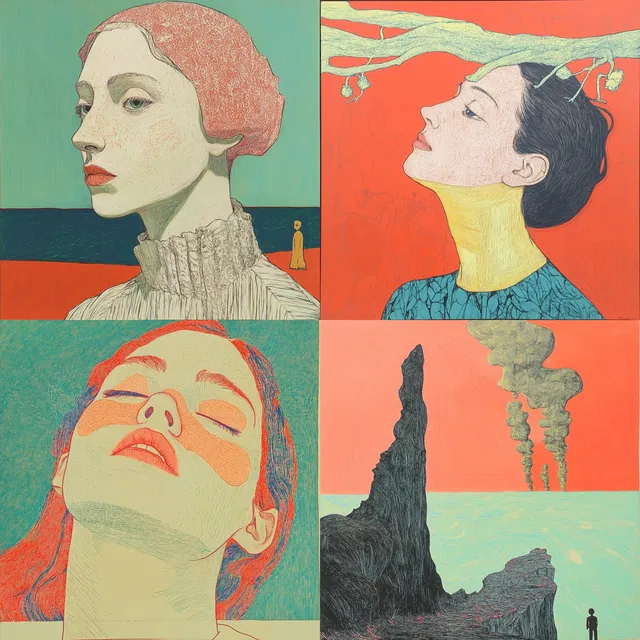 Этот стиль отлично подходит для редакционного дизайна и иллюстрации, предлагая уникальное сочетание повествовательности и абстракции. Однако его отклонение от фотореализма может ограничить применение в реалистичных контекстах.