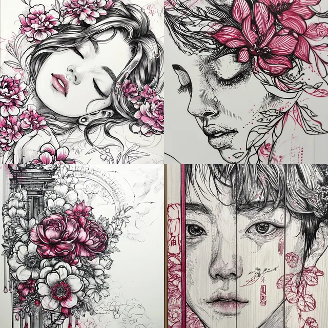 Монохромные композиции с яркими розовыми акцентами создают поразительный контраст, усиливая визуальное воздействие.