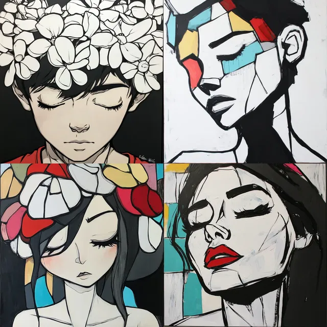 Отличительный графический стиль с чёткими контурами и выразительными линиями создаёт яркое визуальное впечатление. Композиции строятся на высоком контрасте и чётких разграничениях, часто с отсылками к влиянию кубизма и Баухауса. Использование приглушённых тонов придаёт изысканную элегантность, а интеграция геометрических форм и переплетающихся фигур добавляет модернистские нотки.