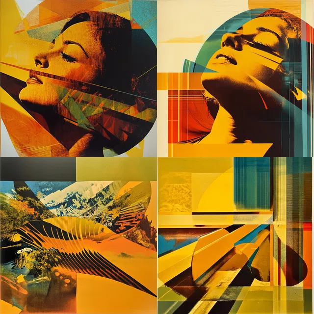 В визуальном пространстве доминирует яркая геометрическая абстракция, для которой характерны многослойные текстуры и резкие контрасты. Динамичные перспективы и отражающие поверхности создают ощущение структурированного хаоса, напоминая о влиянии модернизма и конструктивизма.