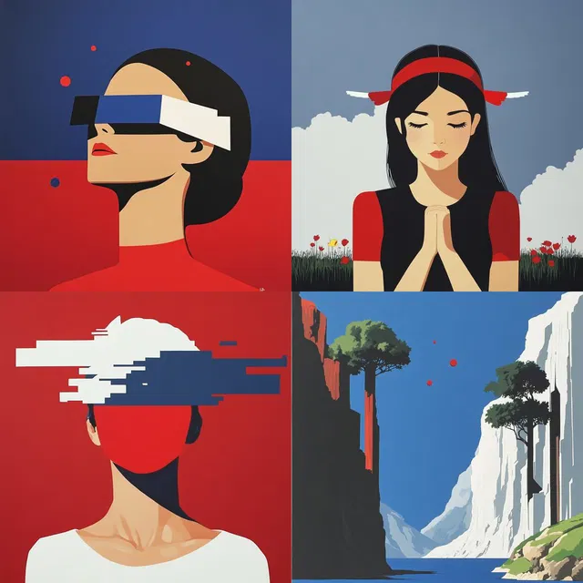 Для этого стиля характерно смелое использование основных цветов и геометрических форм. Он вызывает ощущение модернистского минимализма. Композиции лаконичны и структурированы, часто в них применяются плоские плоскости и резкие контрасты для создания визуального эффекта. В палитре преобладают красный и синий цвета, которые придают каждому произведению динамичную энергию.