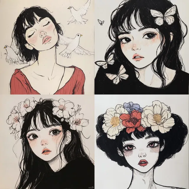 Этот стиль отличается смелыми линиями и напоминает набросок. Он передаёт ощущение нарисованного от руки изображения, которое выглядит современно и вне времени. Минималистичные элементы дизайна и чистые композиции создают ощущение простоты и элегантности.