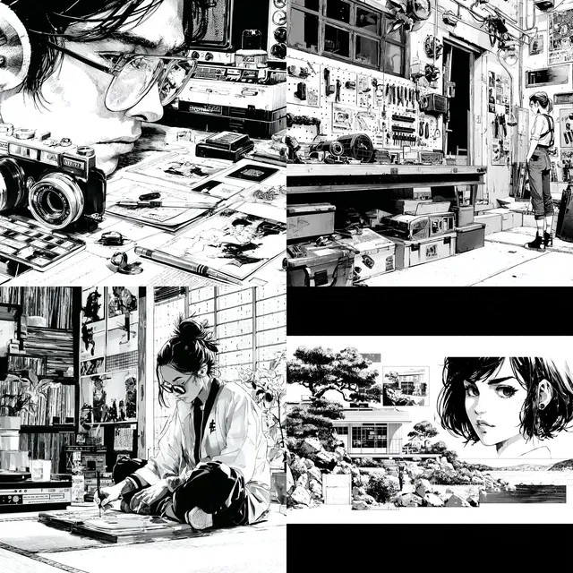 Стиль отличается динамичными композициями и выразительным дизайном персонажей, напоминающим влияние манги и аниме. Однако его монохромный подход может ограничить применение в ситуациях, где требуются яркие цвета.