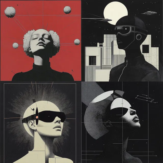 Этот стиль — поразительное исследование монохромной эстетики. В нём делается акцент на геометрической абстракции и минималистичном дизайне. Резкие контрасты и ограниченная палитра создают футуристическую атмосферу, напоминающую о конструктивизме и супрематизме.