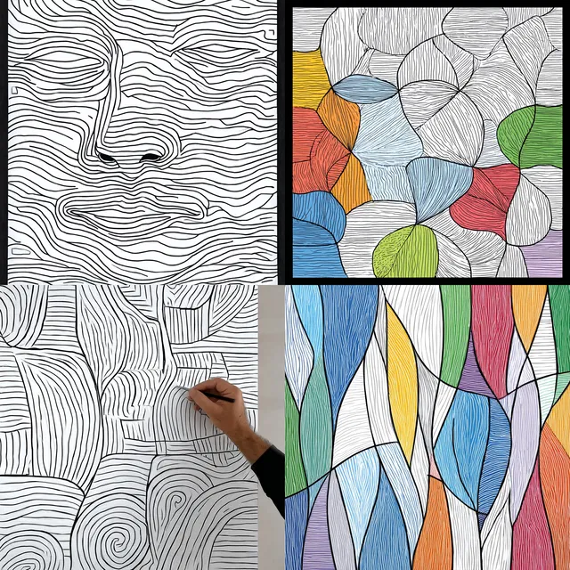 Этот стиль отличается сложными линейными рисунками и геометрической абстракцией. Он создаёт визуально захватывающие композиции с помощью монохромной палитры. Основа его силы — точность линий и структурированное чередование узоров, напоминающее оп-арт и геометрическую абстракцию.