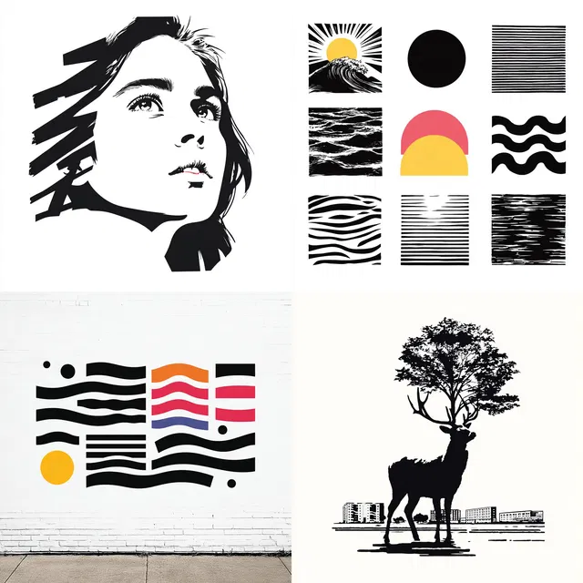 Этот стиль идеален для редакционных иллюстраций и применения в модернистском искусстве. Он процветает в среде, где простота и смелость имеют первостепенное значение.