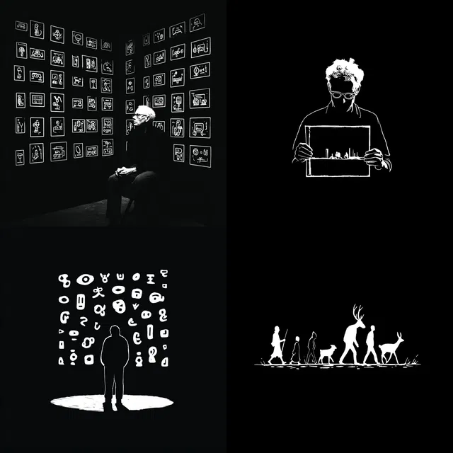 Преобладает монохромная элегантность: высокая контрастность и резкое освещение создают драматический визуальный эффект. Центральную роль играют силуэты и упрощённые формы, подчёркивающие минималистичность и графичность.