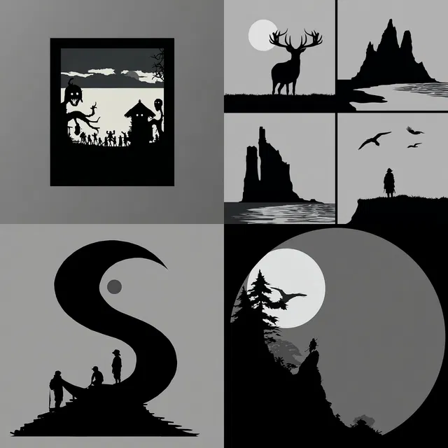 Он прекрасно подходит для искусства силуэта, где с помощью игры теней передаётся глубина и эмоции. В стиле прослеживается влияние конструктивизма и супрематизма — это заметно по абстрактным формам и упрощённым очертаниям, заимствованным из восточноевропейских авангардных течений.
