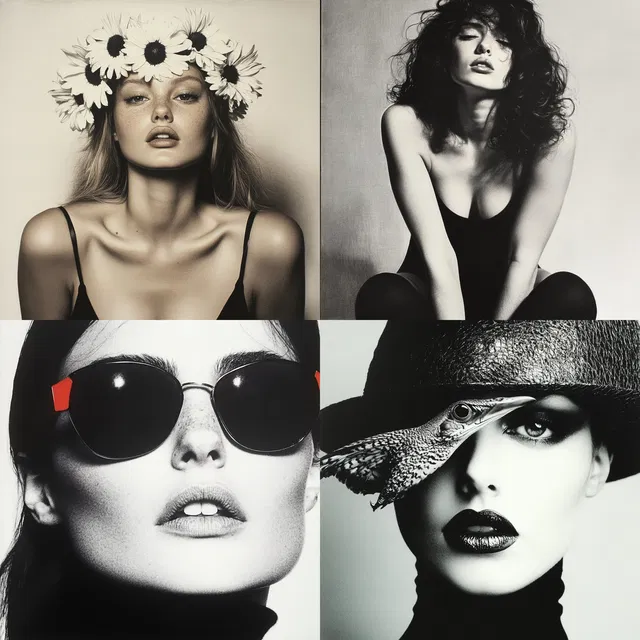 Выразительный монохромный стиль с яркими контрастами и впечатляющими визуальными эффектами. Этот стиль отлично подходит для создания экспрессивных портретов и модных редакционных статей, с винтажным шармом, напоминающим классическую фотографию.