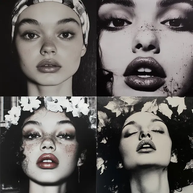 В этом стиле преобладает монохромная точность с акцентом на чёрно-белую чёткость и текстурное богатство. Визуальная резкость и детализация поверхности создают яркий контраст в различных темах — от футуристических городских пейзажей до зачарованных лесов.
