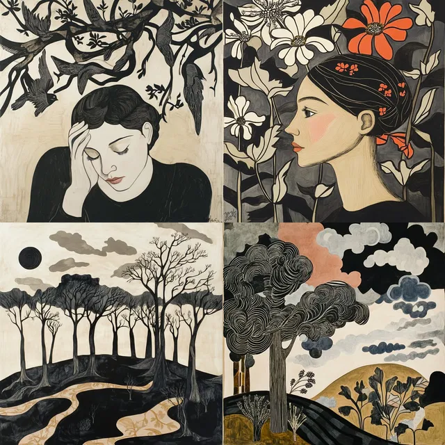 Преобладают характерная монохромная палитра и органические формы, которые создают визуально гармоничный стиль, сочетающий в себе влияние модерна и символизма. Упрощённые композиции и замысловатые детали сливаются, образуя минималистичный, но в то же время изысканный эстетический образ. Широко используются мотивы, вдохновлённые природой, и ботанические узоры, что усиливает связь стиля с природными элементами.