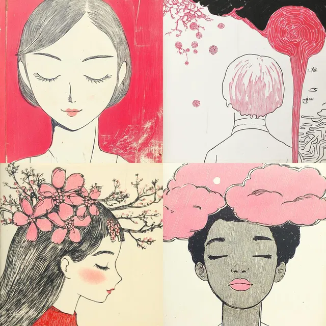 Этот стиль делает акцент на выразительных линиях и яркой монохромной палитре с розовыми акцентами. Он объединяет современный поп-арт с нотками ностальгии. Иллюстративный подход с чёткими линиями и минималистичным дизайном предлагает свежий взгляд на разные темы — от футуризма до фэнтези.