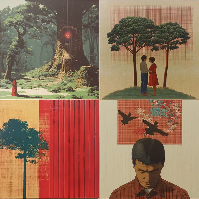 Этот стиль отличается графической точностью и структурной целостностью. Он превосходно создаёт композиции с чёткой ясностью и балансом. Использование приглушённых красных, сдержанных оранжевых и земляных тонов создаёт натуралистичную палитру, которая усиливает визуальную гармонию.