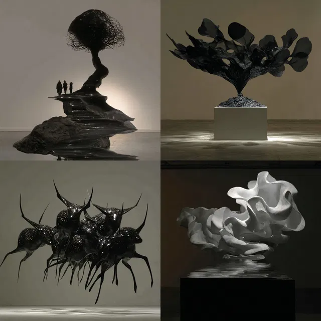 Стиль отлично подходит для скульптурных инсталляций и концептуального искусства, предлагая уникальную интерпретацию минималистичной и сюрреалистической эстетики. Однако его монохромная палитра может ограничивать универсальность в более ярких контекстах.