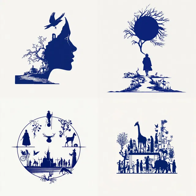 В этом стиле преобладает монохромная палитра. Он отличается использованием двуцветного контраста для создания ярких визуальных историй в искусстве силуэта. Упрощённые формы и минималистичные линии определяют его эстетику, вызывая чувство спокойствия и созерцательности.