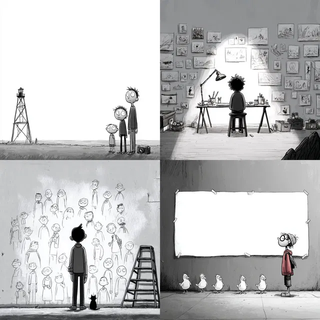 Сила этого стиля заключается в способности передавать эмоции и характер через минималистичные формы и выразительные линии. Это делает его идеальным для детских книг, авторских карикатур и причудливой анимации. Однако зависимость от монохромности и упрощённого дизайна может ограничить его эффективность в более детальных или фотореалистичных контекстах.