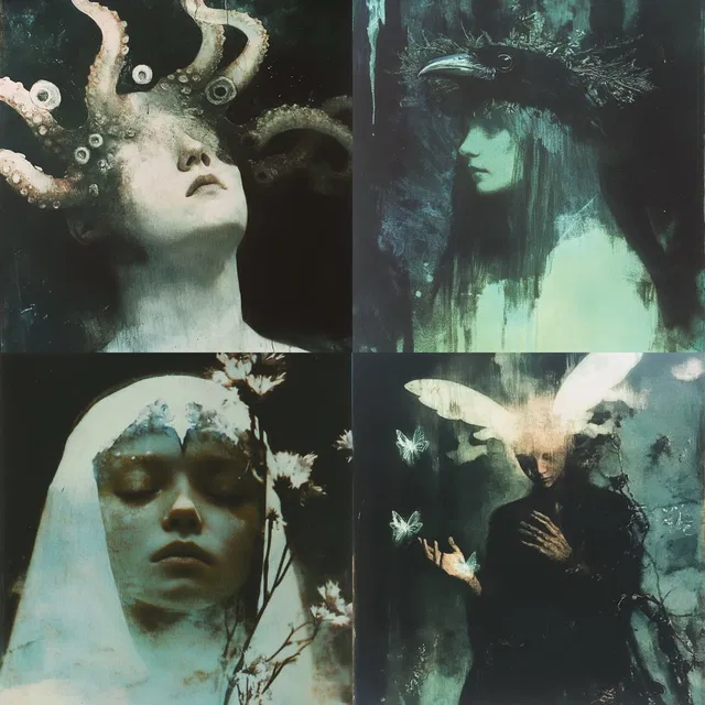 Мистические пейзажи создают сюрреалистичную и неземную атмосферу, для которой характерны мягкие градиенты и приглушённая палитра, намекающие на сказочный мир. Использование в этом стиле сюрреалистических элементов и текстурированных слоёв создаёт потустороннюю ауру, в которой органично сочетаются формы с мистическими фигурами и загадочными пейзажами. Хотя этот стиль прекрасно передаёт ощущение волшебства и духовности, ему может не хватать фотореализма или точности, что делает его более подходящим для художественных экспериментов, нежели для технических применений.