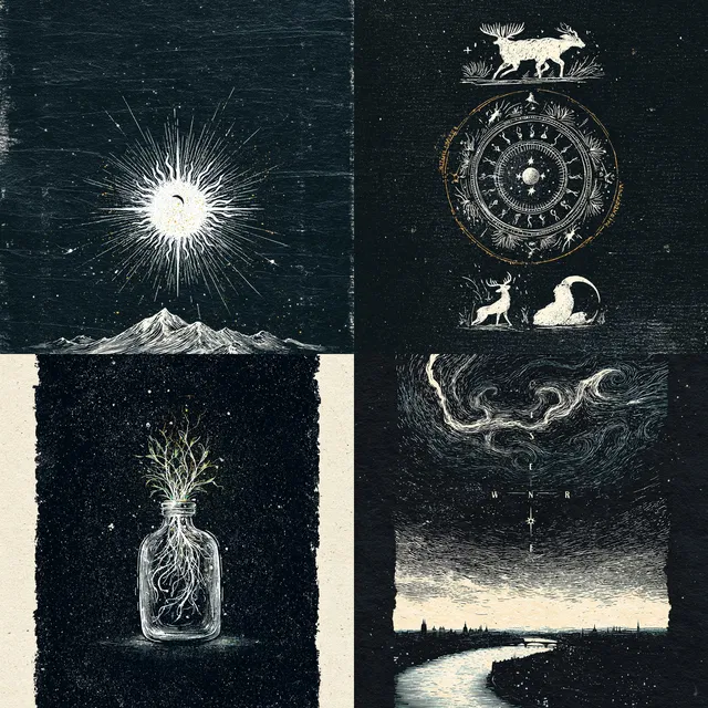 Этот стиль отличается сложной детализацией и изысканным мастерством. В нём преобладает использование монохромных палитр и фактурной прорисовки. Визуальный нарратив насыщен мистическими и космическими темами, часто с использованием небесных и астрономических мотивов.