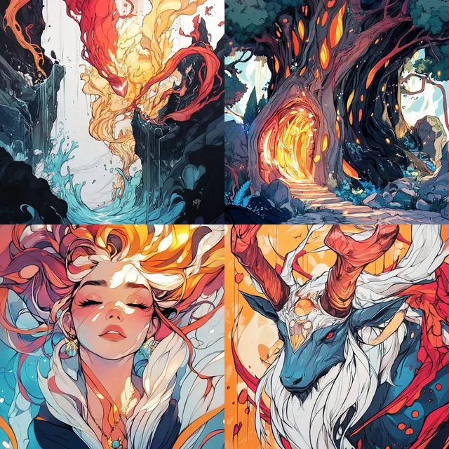 Этот стиль отличается выразительными линиями и яркими палитрами. В нём переплетаются влияния стиля модерн и сюрреалистическое, фантазийное повествование. Плавные формы и замысловатые детали создают динамичное визуальное впечатление, оживляя мифических существ и зачарованные пейзажи.