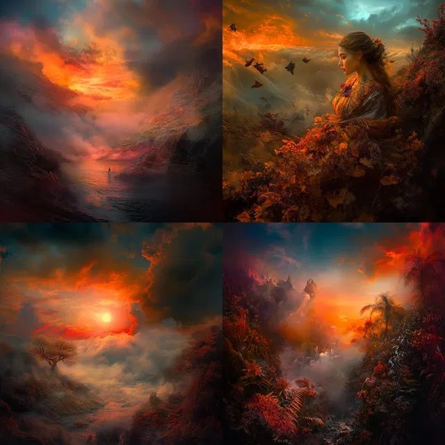 Этот стиль создаёт яркую атмосферу и погружает зрителей в сказочный, сюрреалистичный мир, где насыщенные цвета и замысловатые детали рождают ощущение волшебства. Живописные техники и выразительные композиции создают романтическую, мифическую атмосферу, напоминающую искусство романтизма и барокко.