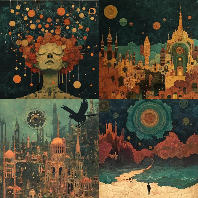 Этот изысканный и витиеватый стиль очаровывает своими насыщенными текстурами и многослойными композициями, напоминая модерн и символизм. Он превосходно создаёт мистическую и сказочную атмосферу благодаря приглушённой, земной палитре цветов, которая вызывает чувство ностальгии и очарования.