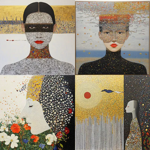 Этот стиль завораживает переплетением сложных мозаичных текстур и многослойных композиций. В его основе лежат пуантилизм и византийские мотивы.