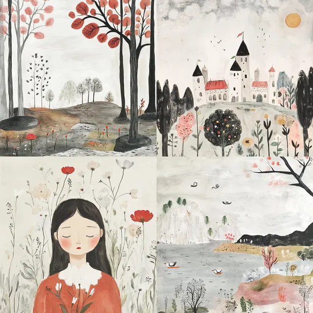 Отличительный стиль, который характеризуется причудливостью и наивностью. В нём используются мягкие пастельные тона и нежные текстуры, чтобы вызвать ощущение детского удивления. Композиции часто включают упрощённые формы и игровые элементы, создавая чарующую и сказочную атмосферу.