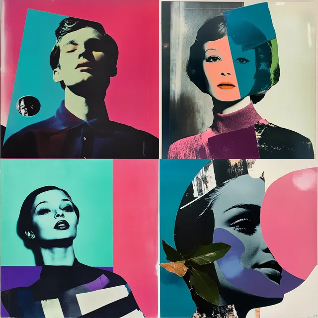 Благодаря использованию насыщенных оттенков и контрастных тонов создаётся игривая и энергичная атмосфера, напоминающая поп-культуру 1960-х годов.