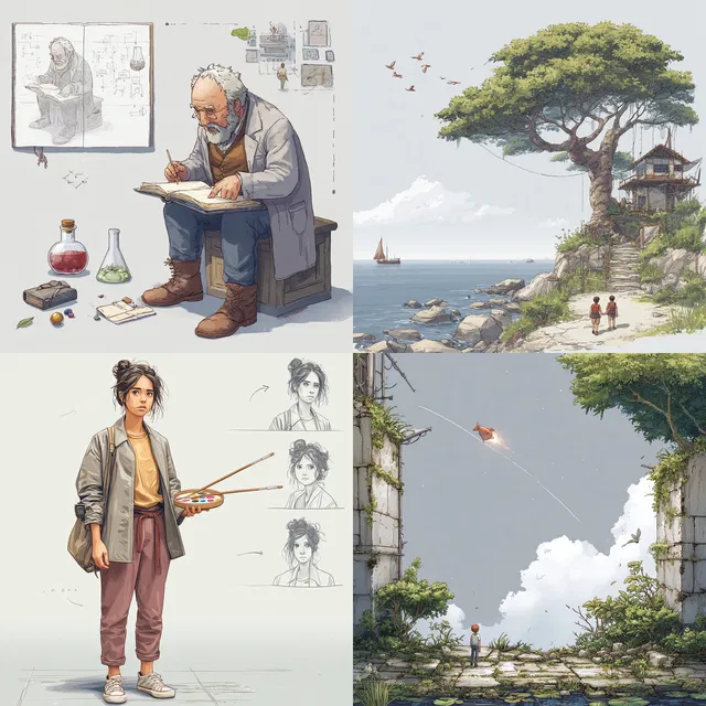 Этот стиль отличается гармоничным сочетанием богатства повествования и сложности иллюстраций. Он прекрасно передаёт спокойное умиротворение и глубину для размышлений. Использование мягких цветовых палитр и нежной техники кисти создаёт атмосферу, которая одновременно манит и побуждает к созерцанию.