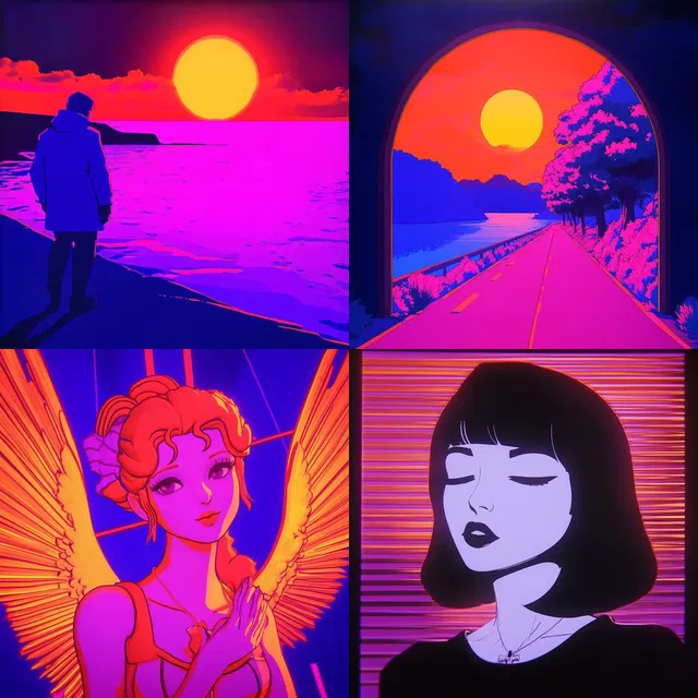 Несмотря на поразительную яркость, этому стилю может не хватать утончённости, что ограничивает его применение в более тонких или фотореалистичных контекстах. Он идеально подходит для проектов, в которых требуется эстетика ретрофутуризма или синтвейва, и прекрасно передаёт суть мира, наполненного неоном.