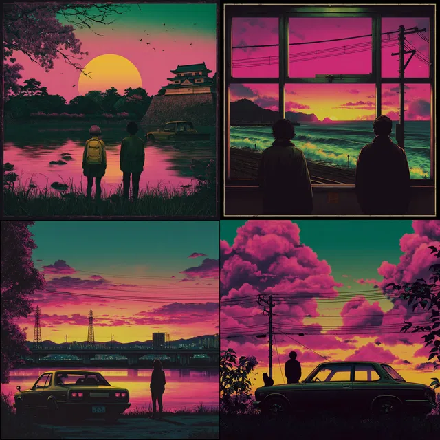 Яркие неоновые оттенки доминируют, создавая сюрреалистичную и сказочную атмосферу в различных темах. Стиль отличается сочетанием элементов ретрофутуризма с насыщенными и яркими цветами, вызывая чувство ностальгии и потусторонности. Динамичные композиции и выразительные детали оживляют городские пейзажи, образы персонажей и замысловатые узоры. Хотя яркая палитра и драматические контрасты стиля поражают, иногда ему не хватает утончённости в фотореалистичных контекстах. Этот стиль идеально подходит для обложек альбомов, рекламного искусства и иллюстраций для повествования. Он процветает в условиях, где приветствуется смелое визуальное повествование.