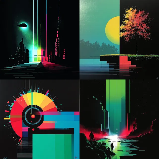 Идеально подходящий для цифрового искусства, графического дизайна и концепт-арта, этот стиль с его структурированной композицией и неоновыми акцентами прекрасно вписывается в брендинг и фэшн-иллюстрацию. Однако его опора на цифровые мотивы может ограничить универсальность применения в более классических или фотореалистичных контекстах.