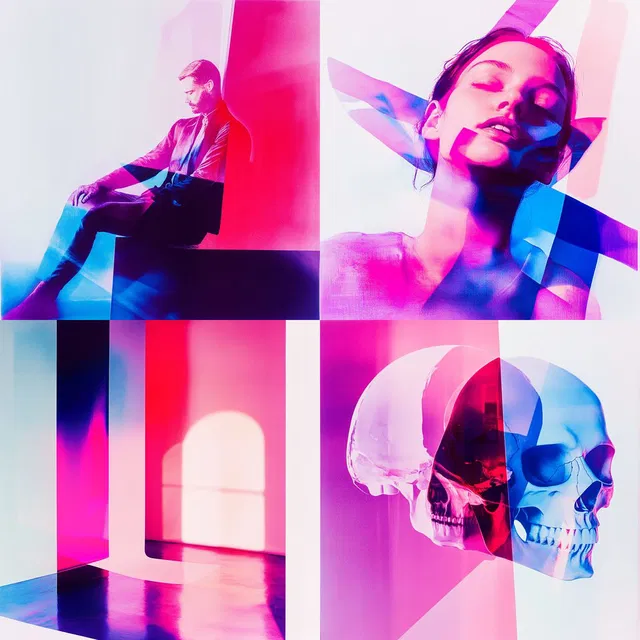 Яркие неоновые оттенки доминируют в визуальном повествовании, создавая эфемерную и динамичную атмосферу, в которой смешиваются сюрреализм и современная эстетика. В этом стиле смело используются градиенты и отражения, что усиливает глубину и контрастность, сохраняя при этом гармоничный баланс между элементами.
