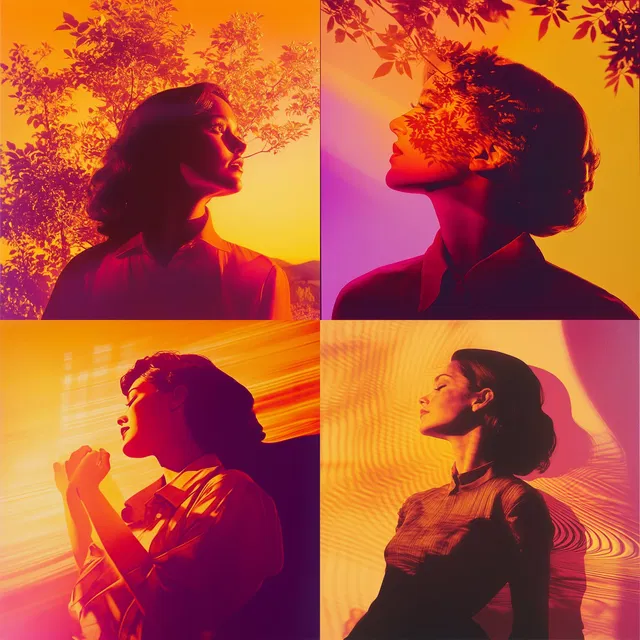 Этот стиль отличается поразительным сочетанием ярких контрастов и выразительных силуэтов. Он передаёт светящуюся элегантность в духе ретрофутуризма. Тёплые оттенки и сияющие тона создают атмосферу яркости и ностальгии. Динамичные макеты и энергичные композиции усиливают визуальное повествование.