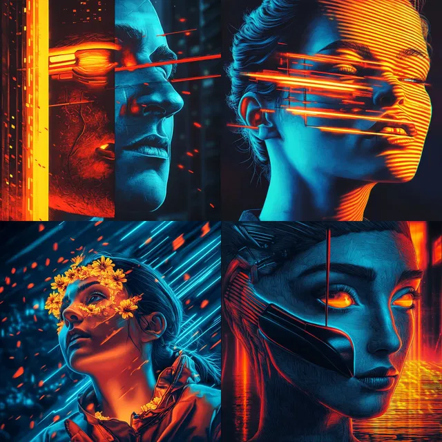 Хотя этот стиль отлично подходит для цифрового и футуристического контекста, ему может не хватать утончённости в более традиционных или фотореалистичных сценах. Идеален для научной фантастики и сюжетов в жанре киберпанк, его яркая палитра и замысловатые дизайны предлагают уникальный визуальный опыт.