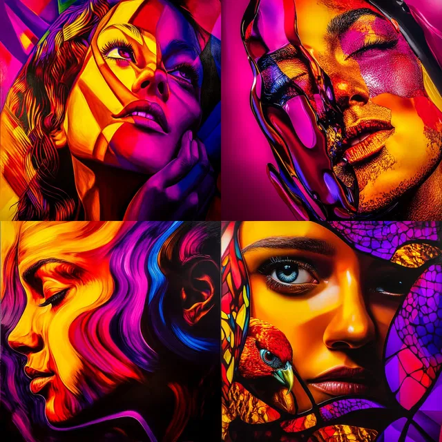 Этот стиль — яркое исследование цвета и света. Он завораживает неоновым спектром и сияющими оттенками. Энергичный и динамичный, каждый элемент пульсирует жизнью, используя призматический подход к визуальному повествованию.