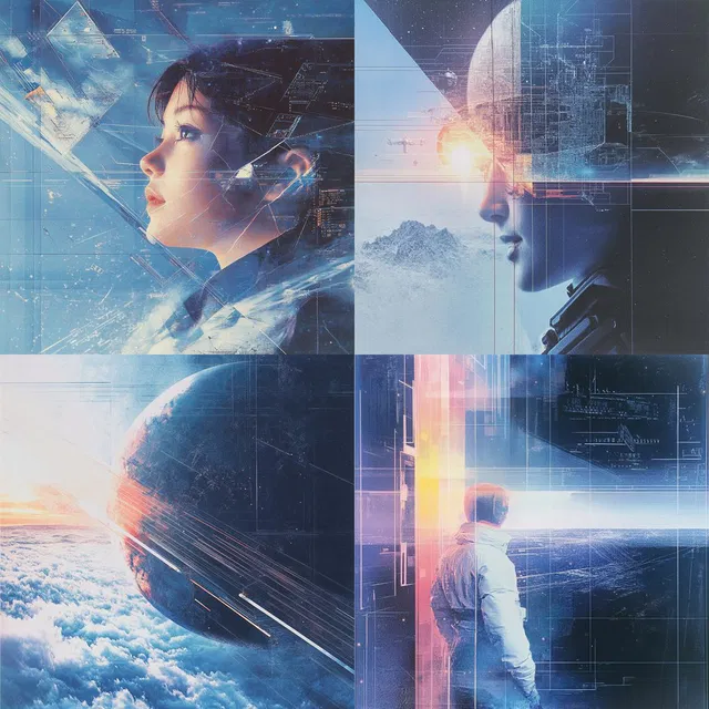 Стиль, который характеризуется футуристической эстетикой, основанной на сетке. В нём используются прохладные тона и высокий контраст, чтобы создать ощущение технологического прогресса и исследований. Он отлично подходит для изображения городских пейзажей, космоса и абстрактных форм с помощью структурированного геометрического подхода.