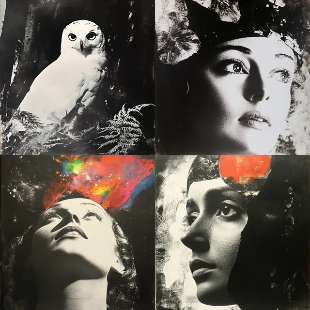 Этот стиль характеризуется монохромной палитрой и высокой контрастностью, что создаёт кинематографическую и сюрреалистичную атмосферу. Богатство текстур и драматическое освещение придают ему завораживающее очарование, напоминающее фильмы жанра нуар и сюрреалистическую фотографию.