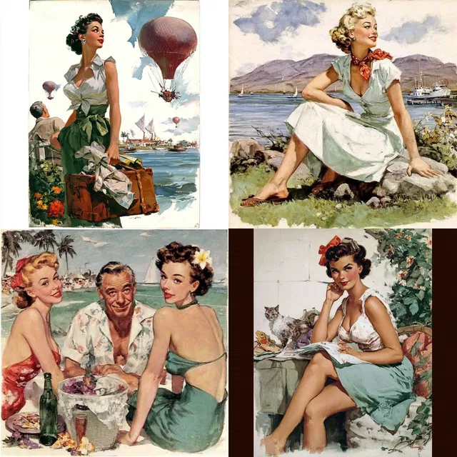Этот стиль — яркий и ностальгический. Он передаёт суть Америки середины XX века с помощью живописных элементов. Его выразительные и иллюстративные качества оживляют эстетику пин-апов, ретрофутуристические видения и бытовые сцены. Всё это исполнено в насыщенных, ярких цветах и при мягком освещении.