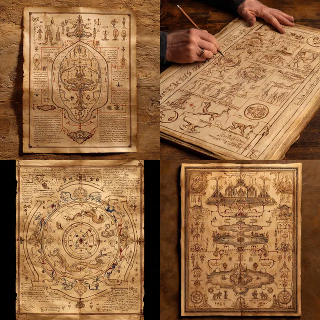 В этом стиле преобладают сложные детали и исторические мотивы, которые вызывают чувство ностальгии и вневременности. Тона сепии и состаренная текстура бумаги создают атмосферу старины, напоминая об искусстве эпохи Ренессанса и Средневековья. Здесь широко используются богатые текстуры и сложные композиции с акцентом на глубину повествования и символические образы.