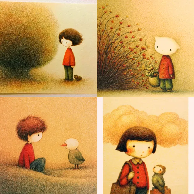 Этот стиль прекрасно передаёт теплоту и простоту, что делает его идеальным для иллюстрирования книг и создания ностальгических образов. Однако ему может не хватать точности, необходимой для фотореалистичных или высокодетализированных работ. Он предпочитает более эфемерный и мечтательный подход.