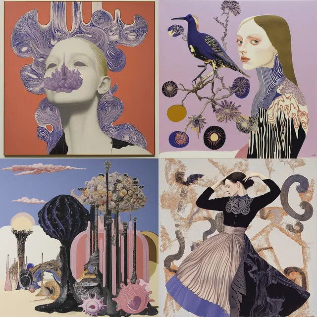 Этот стиль сочетает в себе влияние ар-нуво и современного сюрреализма, создавая сказочную атмосферу. Преобладают пастельные тона и мягкие градиенты, которые усиливают эфемерность. Замысловатые линии и многослойные композиции демонстрируют увлечение витиеватыми деталями и органическими формами.