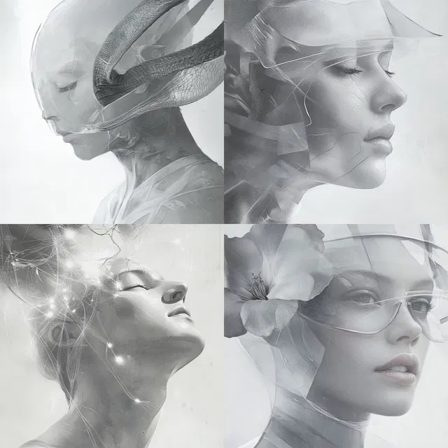 Футуристические и сюрреалистические элементы стиля напоминают авангардные и визионерские художественные течения, что делает его подходящим для концепт-арта, модного дизайна и редакционной иллюстрации. Однако отсутствие ярких цветов и фотореализма может ограничить его применение в более традиционных или реалистичных контекстах.